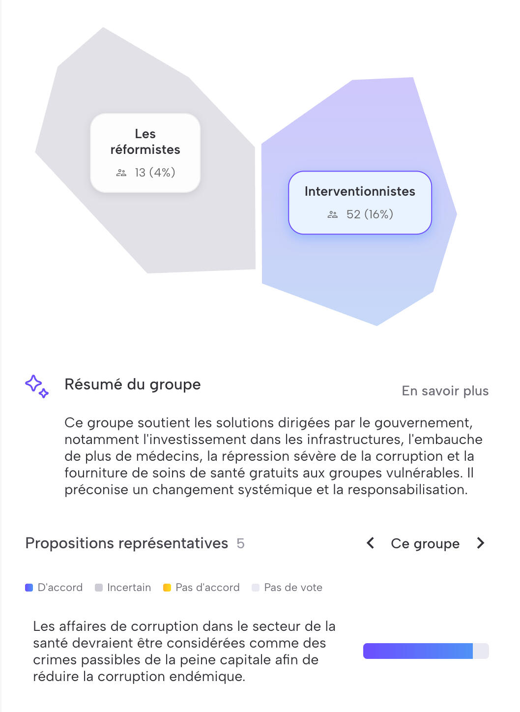Cartographie à haute définition des opinions et des groupes (clusters).